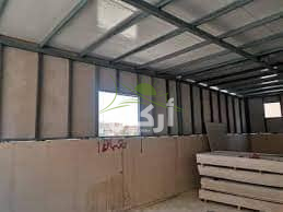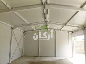 - بعد ذلك تبدأ مرحلة تجميع وتثبيت السقف، ومن الضروري جداً أن يكون السقف بنفس مواصفات الحوائط التي تم تصميمها، مما يعطي شكلاً مميزاً للغرفة أو المستودع يصبح أفضل بكثير، ويتم تثبيت الجدار بالسقف باستخدام زوايا الألومنيوم وبعض البراغي من أجل التثبيت بقوة.